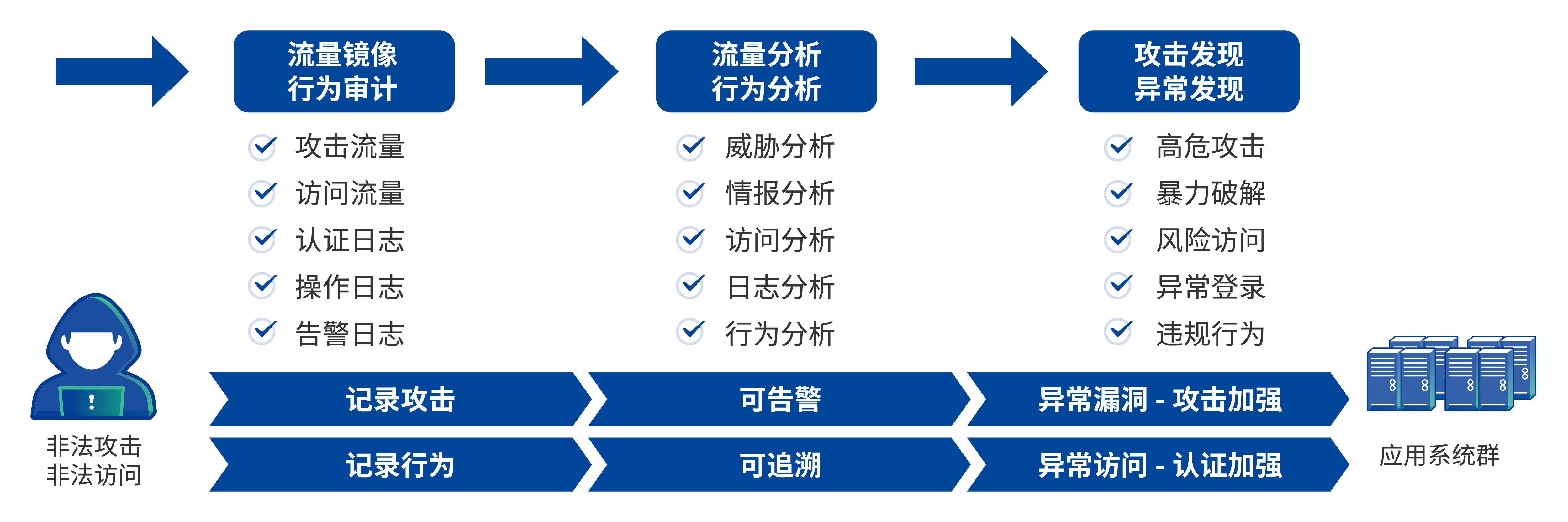 部署全场景安全审计类产品,实现用户行为审计、安全异常风险感知、远程办公业务审计功能;部署终端安全类产品,实现终端安全加固、终端病毒防护安全功能。