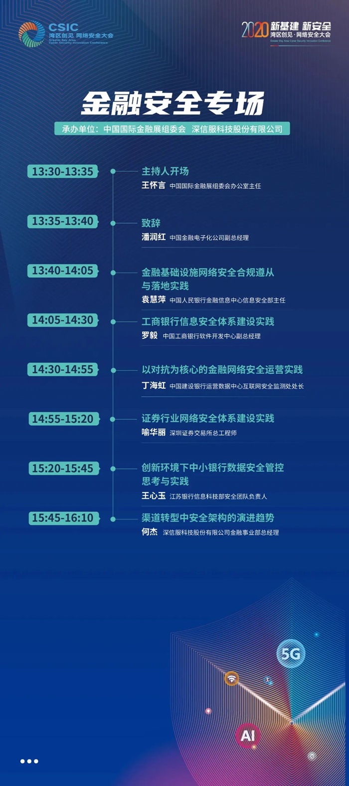 ▲湾区创见·2020网络安全大会金融安全专场会议议程