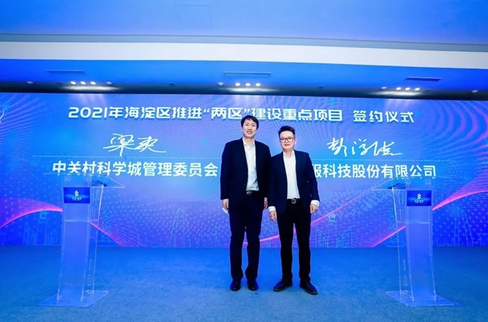 3月2日,2021年北京市海淀区推进“两区”建设重点项目签约仪式在中关村国家自主创新示范区展示中心举行。深信服、小米、字节跳动、国铁工贸、拟未等13个重点项目正式签约。